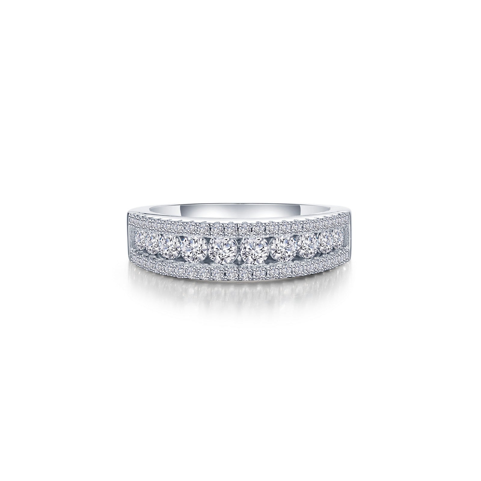 A perfect metaphor for unity and deep connection. The Love's Path Ring is a romantic design that beautifully represents the shared journey two people take together through life. Crafted with a wide band, it symbolizes a path that is meant to be walked hand-in-hand with a significant other. Set with Lafonn's signature Lassaire simulated diamonds in sterling silver bonded with platinum. Pair with R2041CLP.