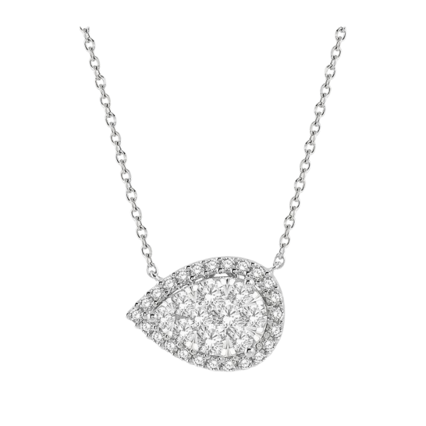 • Details: 3/4 ctw Pear Shape Round Cut Diamond Lovebright Necklace in 14K White Gold
