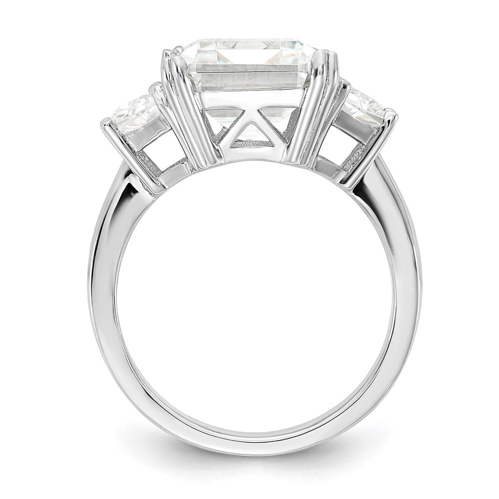 Cheryl M Sterling Silver Rhodium-plated Fancy Emerald-cut and Brilliant-cut CZ 3 Stone Ring