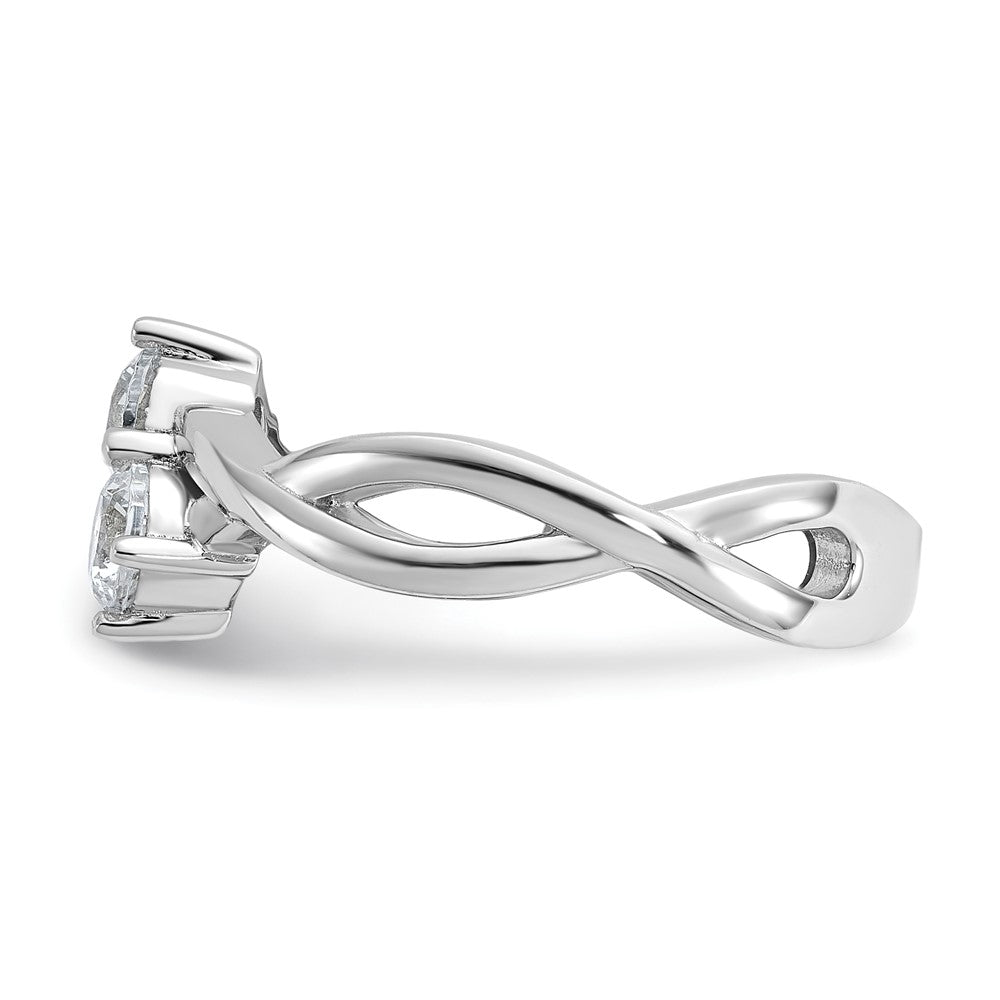 Cheryl M Sterling Silver Rhodium-plated Polished and Crisscross Two Stone CZ Ring