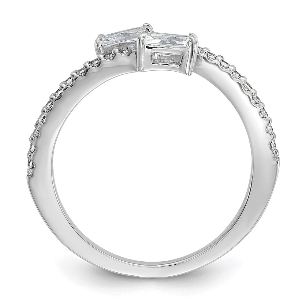 Cheryl M Sterling Silver Rhodium-plated Polished Fancy Emerald-cut CZ Bypass Ring
