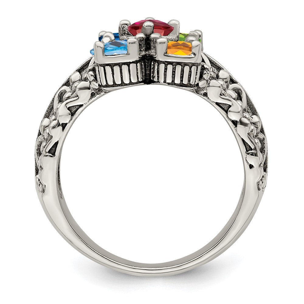 Sterling Silver Antiqued w/14k 5-stone Mother's Ring
