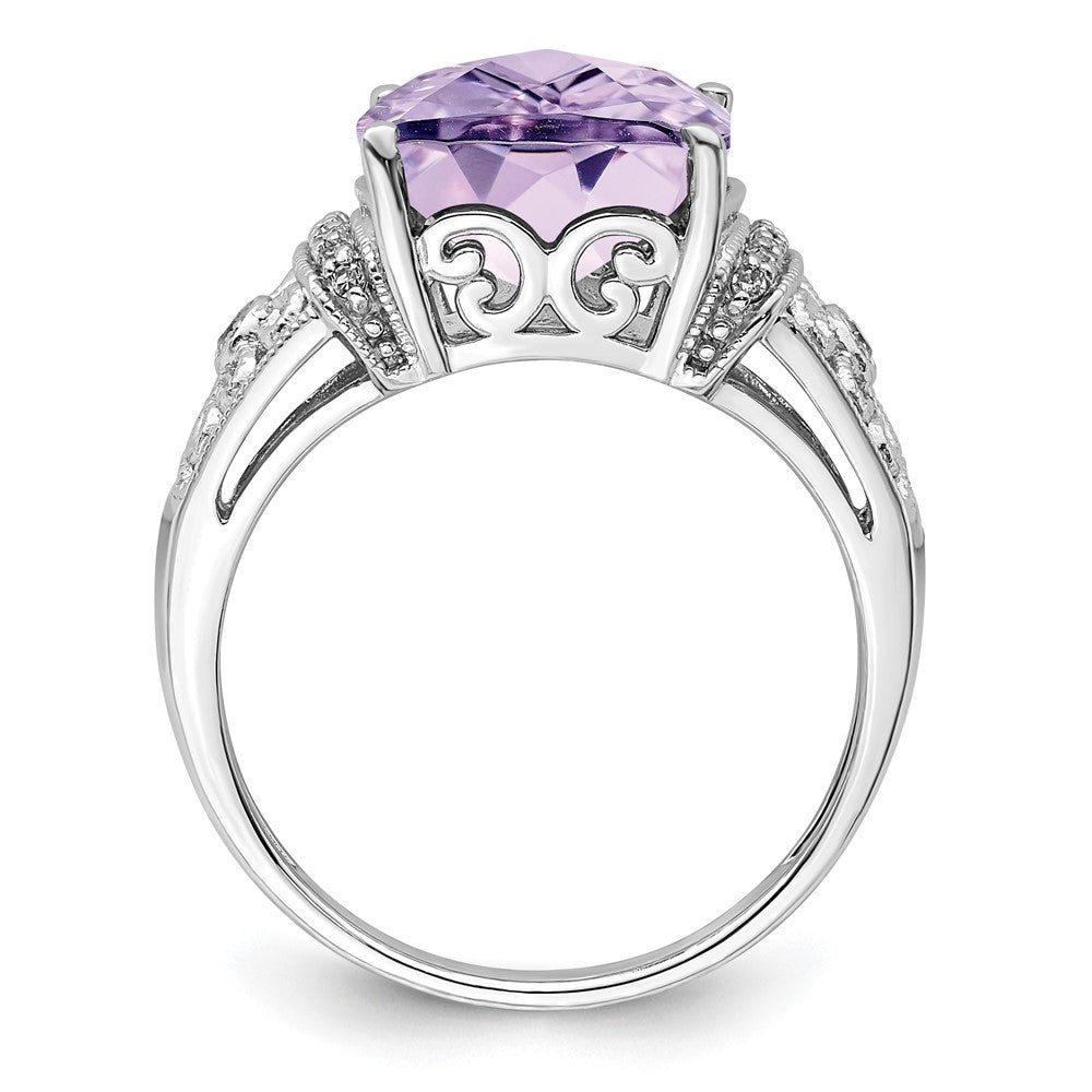 Sterling Silver Rhodium Diam. & Checker-Cut Pink Quartz Ring