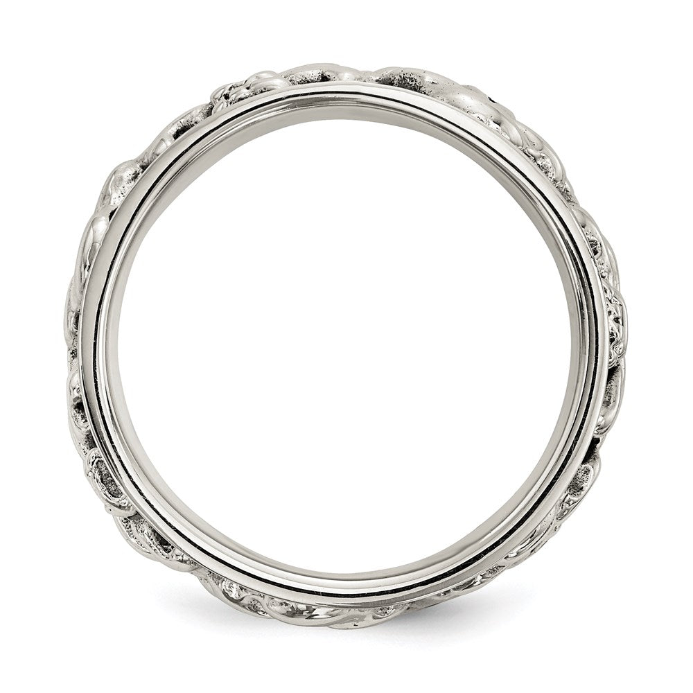 Sterling Silver Polished Spinning Center Antiqued Skull Ring