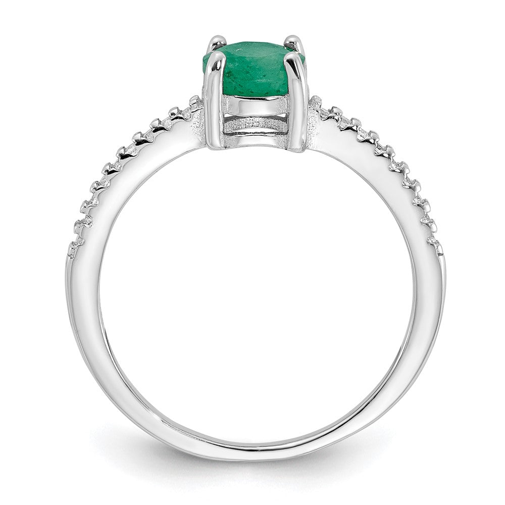 Sterling Silver Rh-plated-plated 1.0EM Emerald and .12WT White Topaz Ring