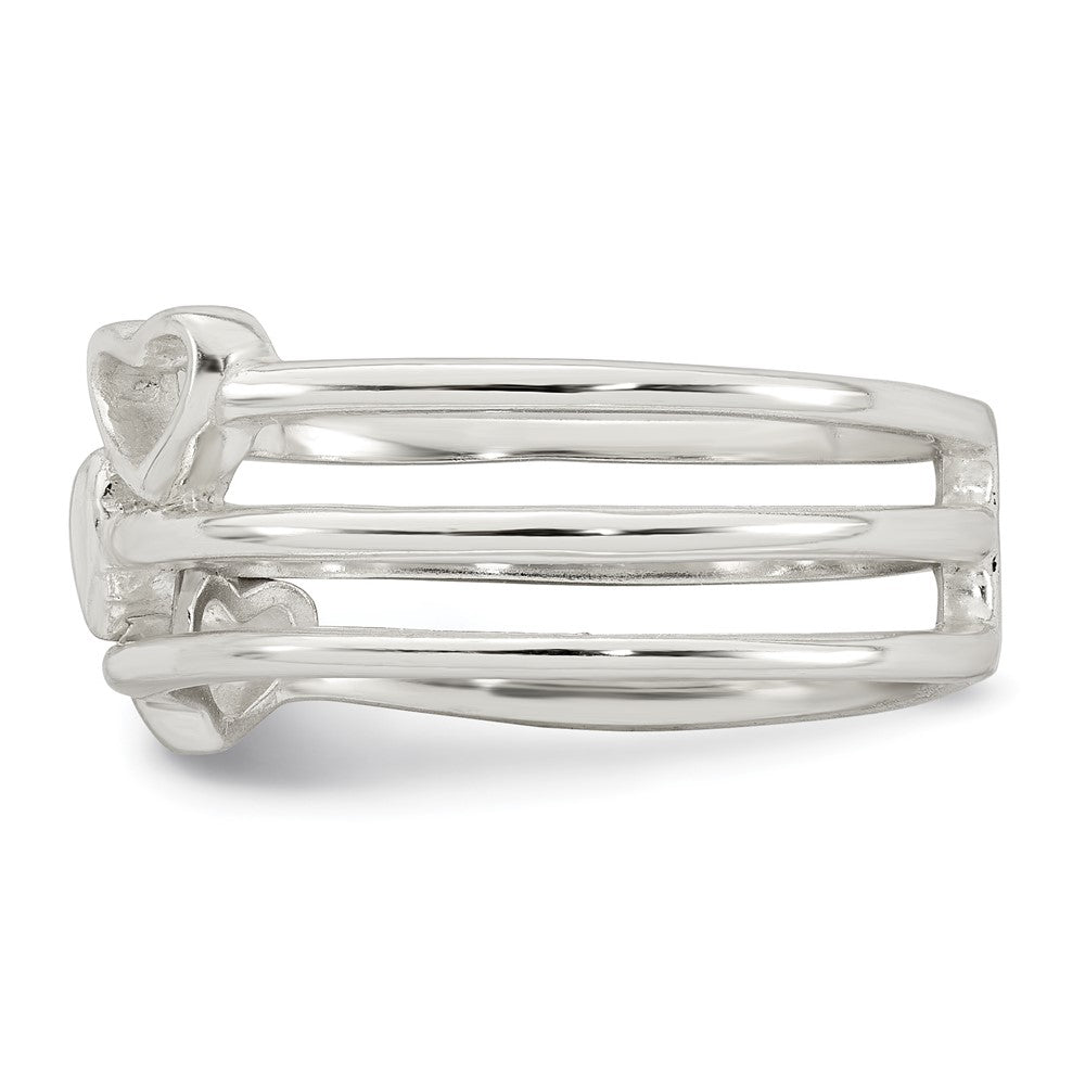 Sterling Silver Polished Hearts Three Band Size 6 Ring
