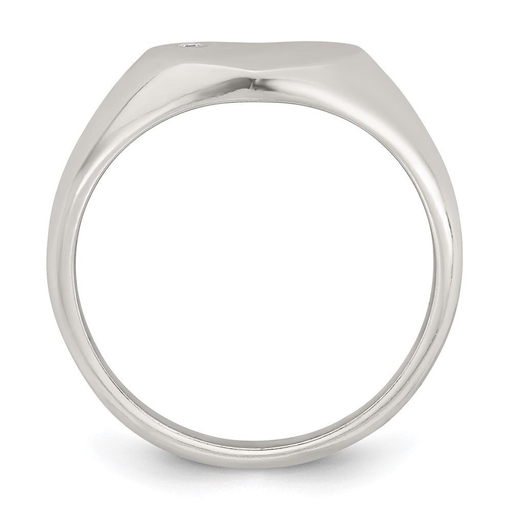Sterling Silver Polished White CZ Heart Size 6 Signet Ring