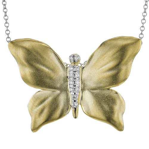 This beautiful pendant on a white gold chain has a matte finish and is accented by sparkling diamonds.