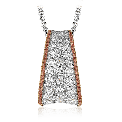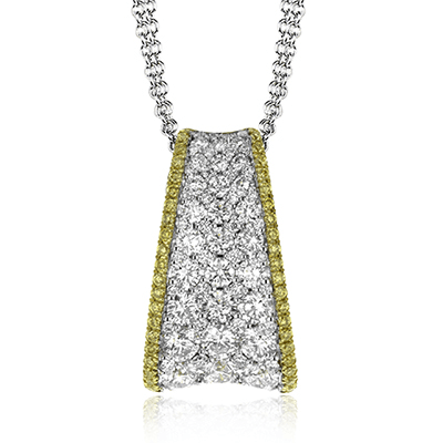 Modern yet romantic, this lovely pendant in gold shines with 1.62 ctw of round white diamonds flanked by beautiful accents of .23 ctw of yellow diamonds.