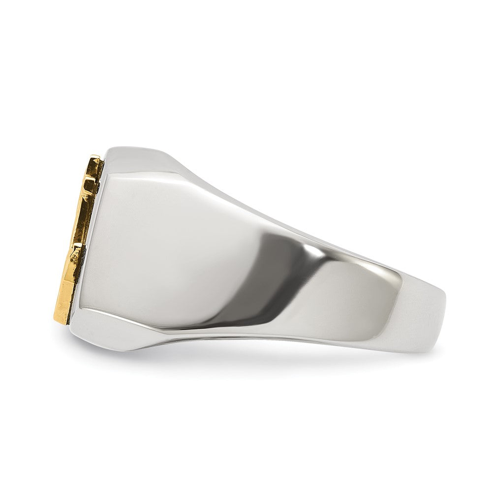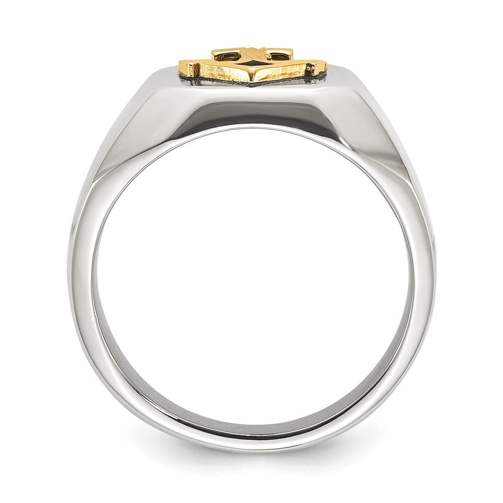 Chisel Stainless Steel Polished with Diamond-cut 14K Gold Accent Anchor with Black Enamel Signet Ring