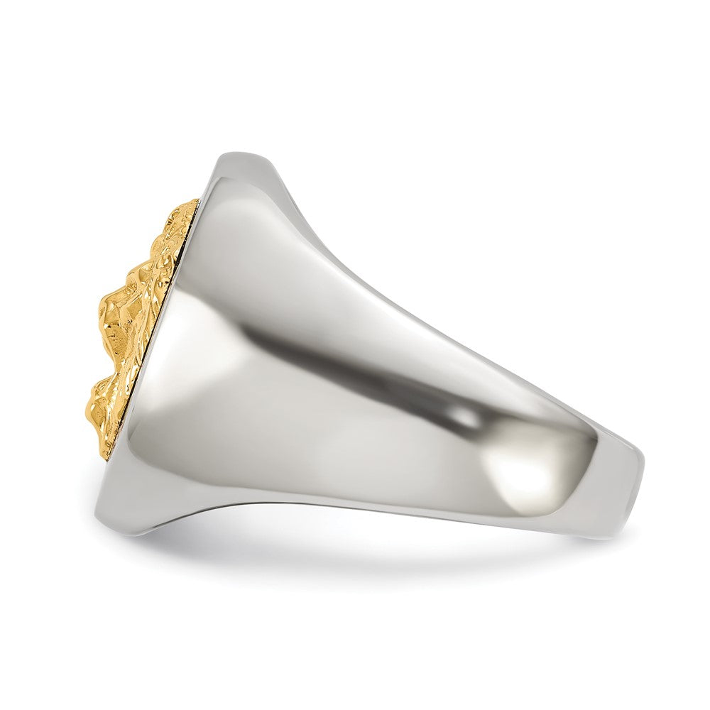 Chisel Stainless Steel Polished with 14K Gold Accent Lion Head Signet Ring