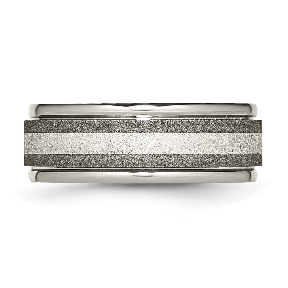 Chisel Titanium Polished with Sterling Silver Inlay Stone Finish Center Grooved Band
