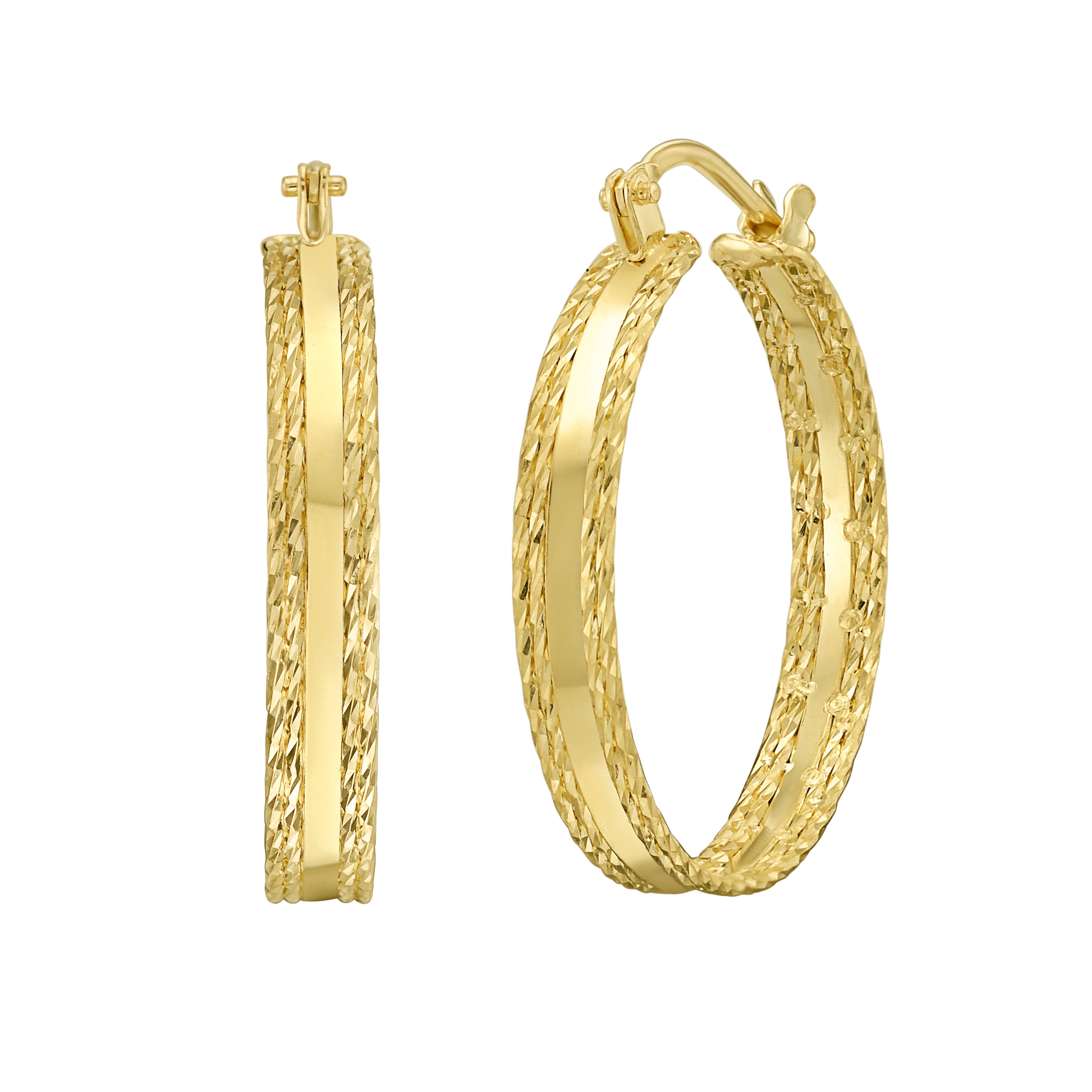 14K Yellow Gold Sparkle Spring Huggie Hoops with Hinged Clasp