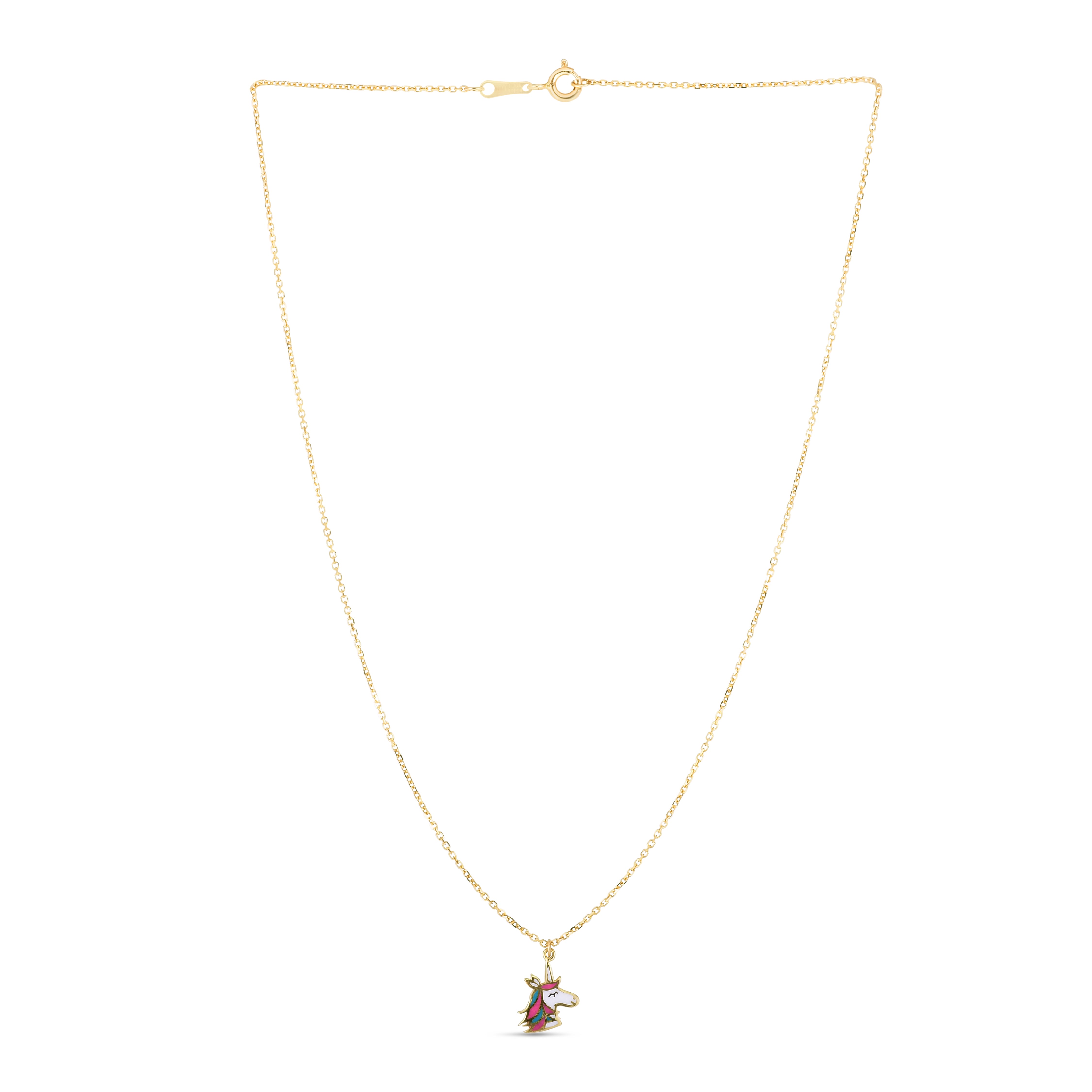 14K Yellow Gold 14" Children's Enamel Unicorn Necklace