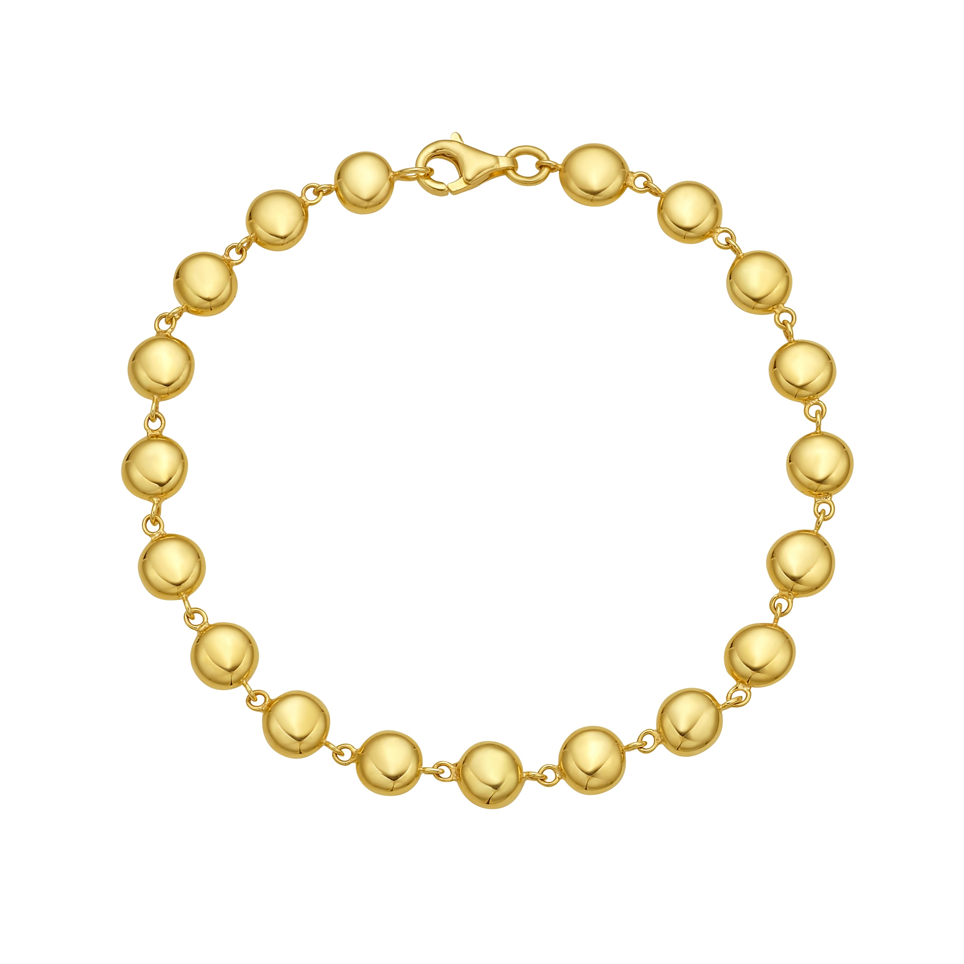 14K Yellow Gold Polished Pebble Bead 7.25" Bracelet with Lobster Clasp
