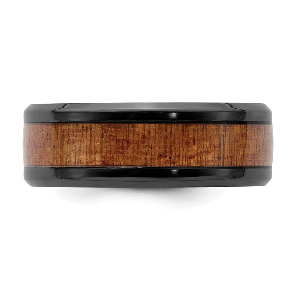 Chisel Black Zirconium Polished with Sapele Wood Inlay 8mm Band